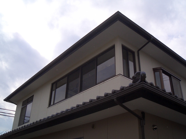 【主な工事内容】 ○2階屋根を和瓦から高耐候金属屋根に葺き替え ○外壁塗装、雨樋交換 ○玄関引戸入れ替え、アルミスクリーン設置 |