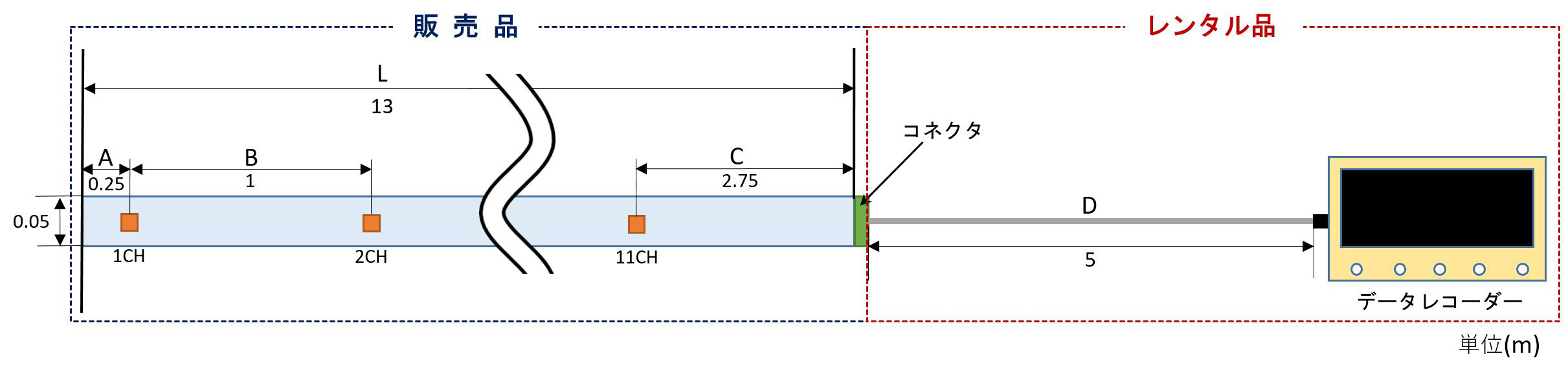 (最小L:0.5m、W:50mm、1ch ~ 最大L:20m、W:50mm、11ch)