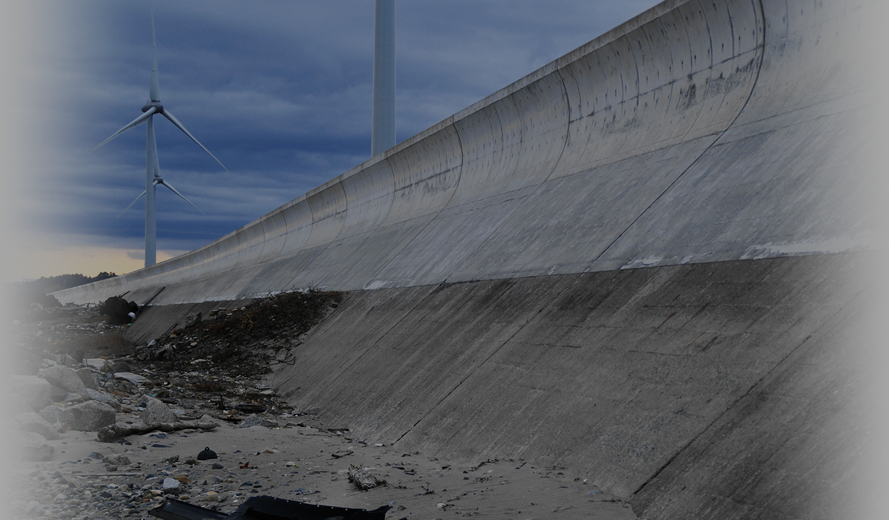 1~4CHの区間は検知部にコンクリートが触れているためモニタ表示は「コンクリート」、5~8CHの区間は海水に浸っているためモニタ表示は「水」、9~11CHの区間は海水から出ているためモニタ表示は「空気」となっております。
